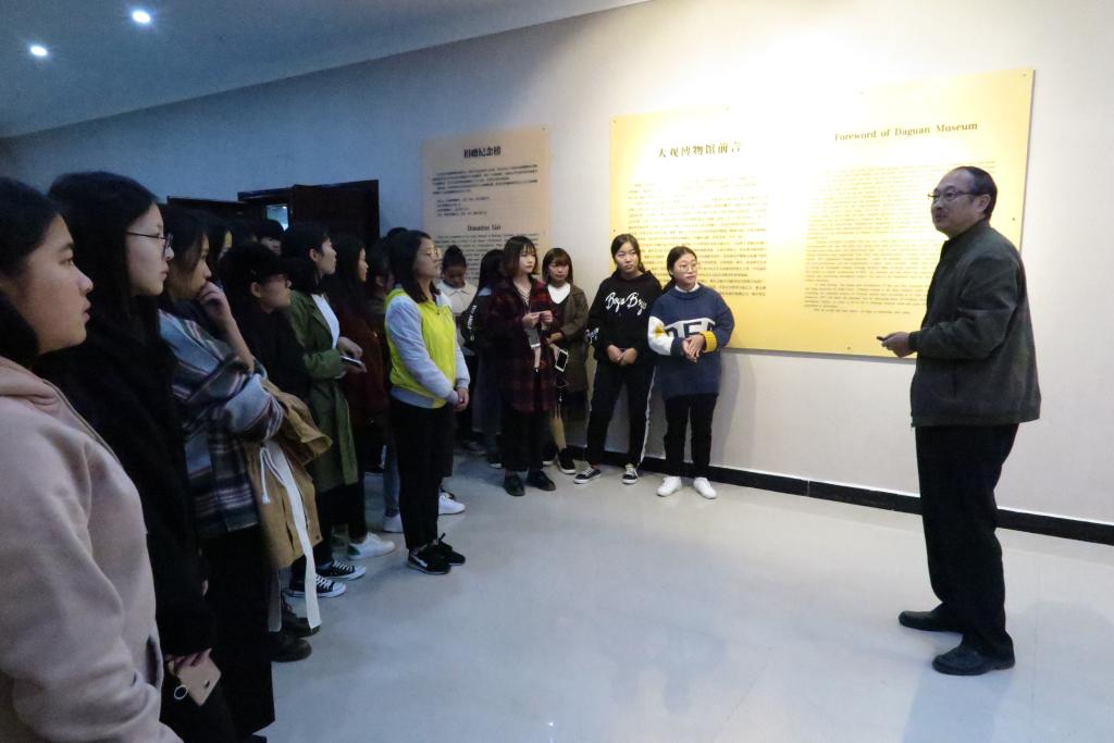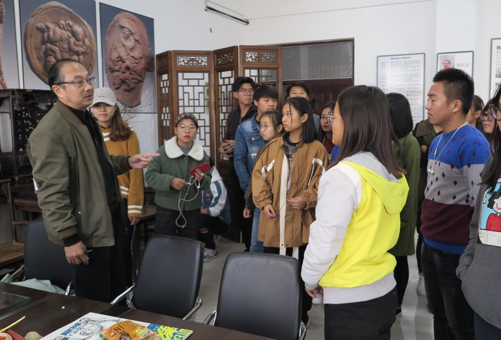 本站訊 為了培養學生的設計創新與審美意識,提高學生的人文素養,藝術設計學院17級服裝與服飾設計專業的40余名同學來到魏躍進教授工作室和大觀藝術博物館進行了《古代服飾賞析》教學。