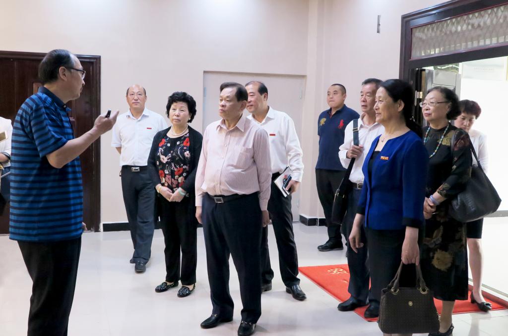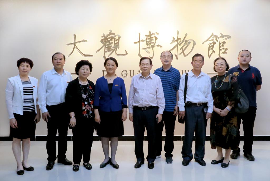 本站訊 5月31日下午,我校董事會董事長李金松博士、趙奎榮女士,世界客屬總商會執行副會長梁鋒先生,世界客屬總商會法律顧問蘇利民女士等一行到大觀藝術博物館考察指導工作。我校黨委書記陳燦、黨委副書記儲建新、工會主席成芳以及藝術設計學院院長魏躍進等陪同參觀。