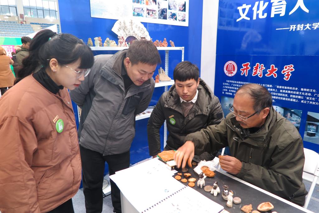 本站訊 12月5日,由河南省委高校工委、河南省教育廳組織開展的河南省第二屆高校校園文化建設優秀成果展在民生學院體育館舉行,來自河南省內的百余所高校參加了此次活動。 我校大觀藝術博物館依托開封歷史文化名城獨特優勢,與河南省(開封大學)非物質文化遺產研究基地、宋文化技能大師工作室聯手打造文化育人平臺,以審美育人、文化育人、實踐創新育人為宗旨,將博物館教育融入到學校專業建設、課程建設與人文素質教育當中,形成了開封大學特色鮮明的校園文化品牌,在此次校園文化優秀成果評選中獲得一等獎。 展示活動中,魏躍進教授代表宋文化技能大師工作室、孫平副教授帶領藝術設計學院旅游工藝品設計專業師生在現場進行了技能展示,并在展區中展出了學生自主設計制作的博物館的文創作品。現場展示活動得到了在場領導及各高校專家的高度關注和好評。