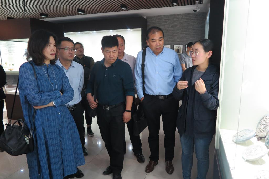 郭明普處長一行參觀了館內(nèi)的基本館藏,聽取了工作人員對文物的介紹。并就博物館與校園文化建設(shè)、館內(nèi)實踐教學(xué)開展、教育職能的發(fā)揮等方面與博物館工作人員進行了交流。