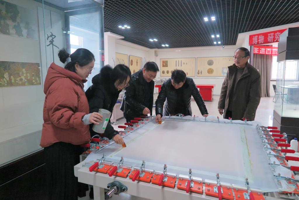 絲網(wǎng)版畫是當(dāng)下發(fā)展速度最快、使用最廣的版種之一,在商業(yè)上得到了大量的運用。從廣告、包裝物、路牌、到衣飾圖案等都離不開絲網(wǎng)版畫印刷,其快捷靈活,在印刷行業(yè)扮演著重要的角色。宋文化工藝品技能大師工作室緊密對接市場需求,開展校企合作,培養(yǎng)具有文化傳承和創(chuàng)新能力的專業(yè)技能人才,服務(wù)開封經(jīng)濟(jì)文化發(fā)展。