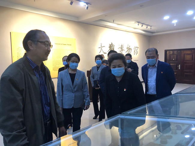 本站訊 5月8日上午,開封市人大常委會副主任、市總工會主席王文娟,市總工會黨組書記、常務副主席和寶杰一行蒞臨魏躍進示范性勞模創新工作室以及大觀博物館進行調研。校黨委書記陳燦、黨委副書記儲建新、工會主席成芳及相關職能部門負責人陪同。