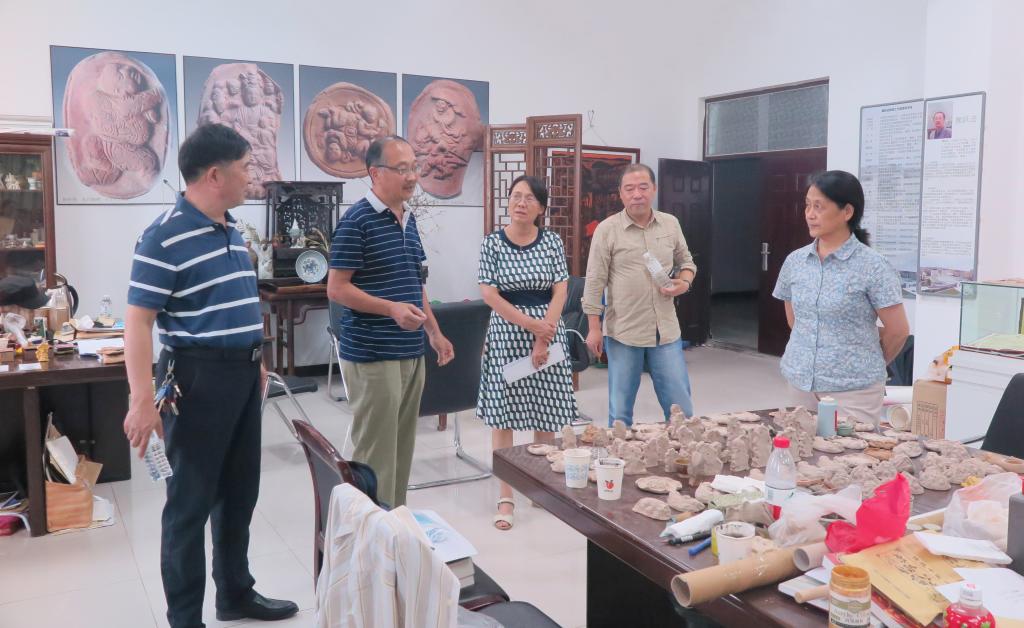本站訊 7月13日下午,我校黨委書記陳燦、副書記儲建新以及校宣傳部長陳巖、校黨政辦公室主任張慶豐到我校宋文化工藝品技能大師工作室調研文化傳承與創新育人平臺建設工作。 魏躍進向校領導匯報了宋文化工藝品技能大師工作室圍繞“三全育人”、結合課程和社會實踐開展文創設計等社會服務工作情況,并展示了工作室的文創設計成果。隨后,校領導又實地調研了宋文化工藝品技能大師工作室的工作場地和設備使用情況。 校領導肯定了工作室取得的成績,同時對技能大師工作室提出了更高的要求。校領導指出,宋文化工藝品技能大師工作室等文化傳承與創新育人平臺,要在“三全育人”和為開封國際文化旅游名城建設中發揮作用,提高平臺的社會服務能力。校領導要求宋文化工藝品技能大師工作室要進一步凝練特色,結合開封的文創產業發展需求,一方面要培養學生的文創設計與制作能力;另一方面,要發揮宋文化工藝品技能大師工作室的人才與設備等優勢,為開封的文創企業提供服務。