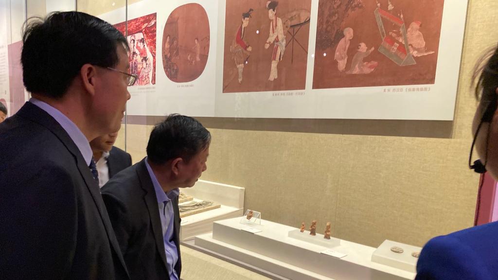 本站訊 由河南省文物局、開封市人民政府指導(dǎo),開封市文化廣電和旅游局主辦,開封市博物館承辦的《風(fēng)·雅·宋——宋代文物展》于10月17日在開封市博物館中意湖館區(qū)開幕。河南省文物局局長、黨組書記田凱,中共開封市委副書記秦保強,開封市人大常委會副主任穆宏地,開封市人民政府副市長黃玉國等領(lǐng)導(dǎo),以及14家博物館、考古研究院負(fù)責(zé)人共同出席了開幕式。我校大觀博物館選出20余套(組)共計40余件文物參與了此次展覽,博物館代表參與了開幕式活動。