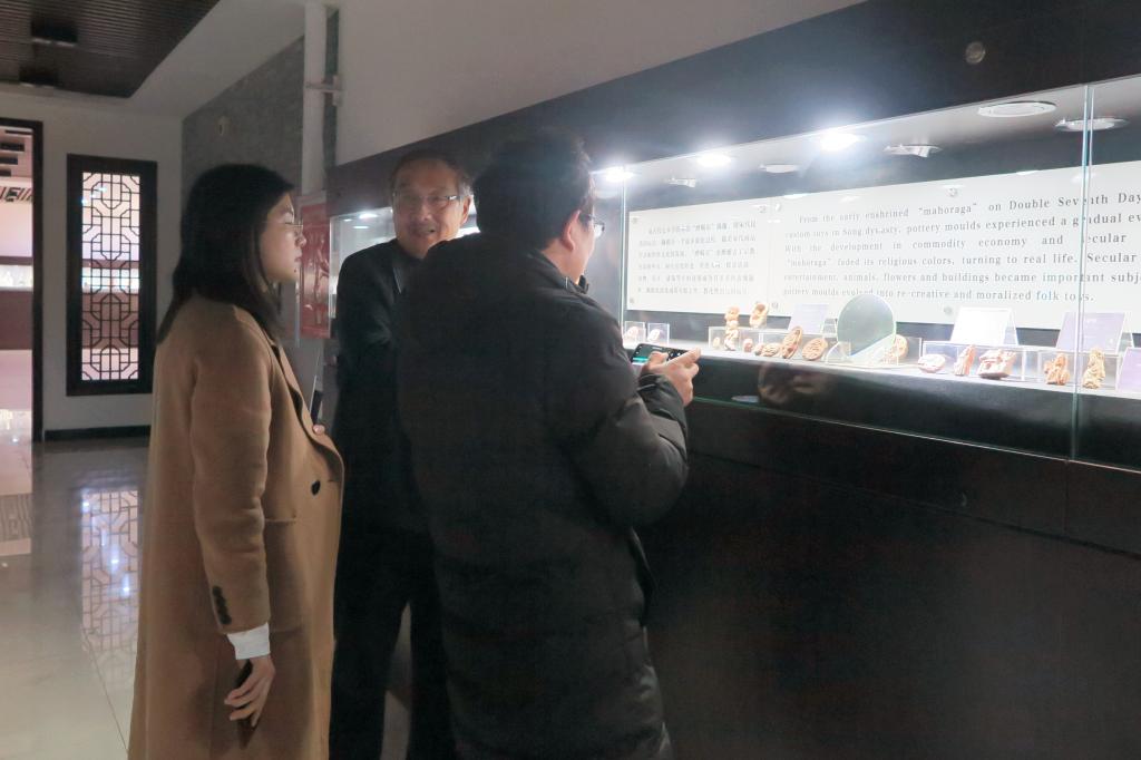 本站訊 3月22日,開封日報社記者盧浩然等一行到我校,就宋代陶模文化的相關問題對魏躍進教授進行了專題采訪。 魏躍進教授向記者們介紹了宋代陶模的發現、功能、材質以及陶模背后所展現的民俗生活與審美情趣等。隨后,帶領記者們參觀了技能大師工作室以及大觀博物館內的陶模展品,并展示了宋代陶模的衍生文創產品。魏躍進教授指出,宋代陶模體積雖小,但造型精美,題材豐富,方寸中展現了宋代世俗百態和民族文化精神,是研究宋代文化藝術的重要資料。 盧浩然記者表示,宋代陶模是宋文化的代表性文化符號,也是古城開封重要的文化遺產,希望通過宋代陶模,宣傳開封的古都文化以及歷史底蘊,擴大開封城市文化影響力,為開封的宋文化研究添磚加瓦。