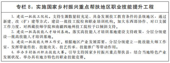 (六)提高區域就業承載力。 推動區域就業協調發展。支持東部地區發揮創新要素集聚優勢,率先實現產業升級,開拓高質量就業新領域,培育高質量就業增長極。加快完善中西部和東北地區基礎設施,提升產業集聚區公共服務效能,引導產業向中西部和東北地區有序梯度轉移,推動就業機會向中西部和東北地區擴散。支持中西部和東北地區根據國家戰略導向和發展重點,對接先進生產要素和創新資源,發展特色優勢產業,改造提升傳統產業,積極布局新興產業,厚植就業創業沃土。 實施特殊類型地區就業促進行動。健全鞏固拓展脫貧攻堅成果長效機制,統籌各類政策資源,強化后續扶持,以脫貧地區為重點,支持欠發達地區因地制宜發展吸納就業效果好的富民產業。支持革命老區、邊境地區等發展本地特色產業,推進資源型地區加快培育發展接續替代產業,完善就地就近就業配套設施,做好邊民、少數民族勞動者和失地農民、下崗礦工、停產企業員工等困難群體就業幫扶。對高失業率地區開展專項就業援助,針對性開發和推薦就業崗位,促進失業人員再就業。 壯大縣鄉村促就業內生動力。深入推進新型城鎮化和鄉村振興戰略有效銜接,推動縣鄉村聯動發展,促進產鎮融合、產村一體,打造“一縣一業”、“一鄉一特”、“一村一品”經濟圈,做好產業和就業幫扶。推進以縣城為重要載體的城鎮化建設,補短板強弱項,增強綜合服務能力,促進綠色低碳發展,吸引各類生產要素向縣城流動聚集,做大做強縣域經濟,擴大縣城就業需求。支持鄉鎮提升服務功能,增加生產生活要素供給,為發展產業、帶動就業創造良好條件,把鄉鎮建設成拉動農村勞動力就業的區域中心。完善農村一二三產業融合發展體系,豐富鄉村經濟業態,促進鄉村產業多模式融合、多類型示范,打造鄉村產業鏈供應鏈,加快鄉村產業振興步伐,培育鄉村就業增長極。