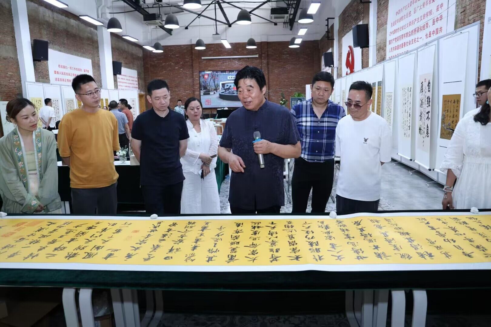據(jù)了解,本次展覽共展示著名書法家,中國民主建國會中央畫院藝術(shù)委員會副主任、河南省政協(xié)書畫院院務(wù)委員、民建河南省委文化委副主任李本松60多幅精品力作,涵蓋了行楷書、行書、行草書、草書、篆書等多種字體。從形式有中堂、條幅、斗方、對聯(lián)、團扇、四條屏、六條屏、長卷等。充分展現(xiàn)李本松先生在書法領(lǐng)域多年求索,以二王為基礎(chǔ),融匯百家之長的獨特書風(fēng),其五體兼善,穩(wěn)重飄逸書法神韻,受到與會領(lǐng)導(dǎo)及書畫愛好者的高度贊賞。