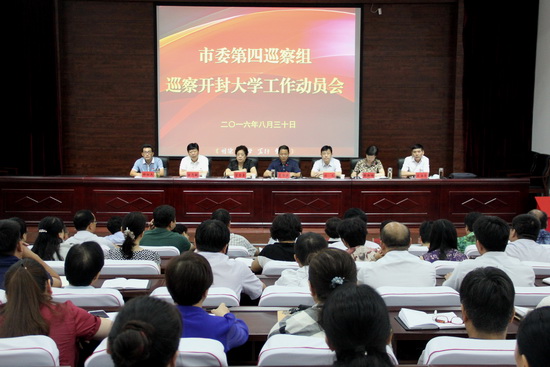 本站訊 根據(jù)市委統(tǒng)一部署,8月23日至9月底,開封市委第四巡察組對我校黨委進行巡察。8月30日上午,巡察工作動員會在我校行政樓一樓報告廳舉行。市委巡察工作領(lǐng)導小組成員、市紀委常務副書記、市預防腐敗局局長夏華其,市委巡察工作領(lǐng)導小組成員、市委巡察辦主任厲克,市委第四巡察組組長管堅勇,副組長宋海青,副縣級巡察專員鄒紅兵、第四巡察組全體成員及我校黨政領(lǐng)導班子成員出席了會議。我校院部班子成員、各黨政部門負責人、教授參加了會議。會議由我校黨委書記張新梅主持。