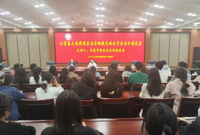 本站訊 為增強我校師生國家安全意識,承擔維護國家安全的社會責任。4月14日下午,在第八個“全民國家安全日”到來之際,我校特邀開封市國家安全局楊政委作題為《以青春之我做國家安全鋼鐵長城的守護者和建設者》的專題報告。校黨委副書記儲建新出席并主持會議,各院部師生代表、信息工程學院青馬班學員參加報告會。