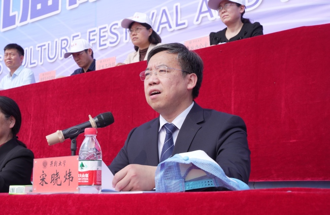 校長宋曉煒在開幕辭中指出,本次體育文化節(jié)是我校體育文化工作的一件盛事,也是學校增添發(fā)展新活力,凝聚改革新動力的盛會。近年來,學校始終堅持“健康第一”的核心指導思想,樹立“以人為本、健康第一、全面發(fā)展、終身受益”的體育教育理念,不斷創(chuàng)新體育課程設置,體育課程建設與體育教學改革不斷推進。他強調,運動會是開放校園中流動的課堂,為每一個參與者提供了一個實踐與鍛煉的機遇,是智慧、能力和品德的挑戰(zhàn)。希望廣大師生能夠發(fā)揚“團結、友愛、奮進”的良好風格,弘揚“快、高、強”的體育精神,在本次運動會上奮勇拼搏、敢于爭先,賽出風格、賽出水平,展示開大風采。