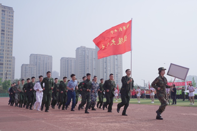 伴隨著激昂熱烈的運動員進行曲,國旗護衛(wèi)隊、花束隊、彩旗隊及各院部運動員方陣依次入場,整齊的隊伍、矯健的步伐、嘹亮的口號展現(xiàn)了開大人拼搏進取、昂揚向上的精神風貌。