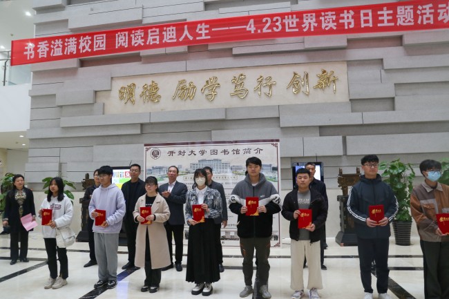 與會領導為“讀者之星”和“優秀學生管理員”頒發了證書。李好軍代表新華書店向我校捐贈了《文化開封》系列圖書。啟動儀式結束后,同學們積極踴躍、熱情高漲地參加了“書迷猜書謎”現場有獎問答活動。