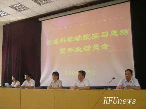 本站訊 為了對2009—2010學年的畢業實習進行總結,表彰在實習工作中表現優秀的學生,并為畢業生文明離校進行教育。5月31日,管理科學學院在學校報告廳組織了實習總結暨畢業動員會。