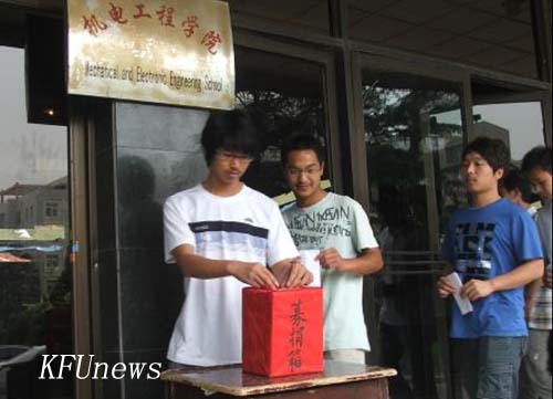 本站訊 一號(hào)教學(xué)樓前,機(jī)電工程學(xué)院全體師生冒著瀝瀝細(xì)雨,主動(dòng)為機(jī)電學(xué)院栗洪照老師捐款,籌集醫(yī)療費(fèi)。