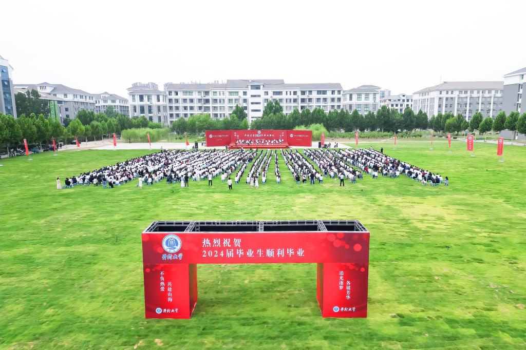 2024年畢業典禮在校歌《勇攀高峰》的激揚旋律中圓滿落幕。主席臺上,與會領導起立歡送畢業生踏上人生新征程,畢業生將帶著母校的期望和囑托,勇敢啟程,向光而行。