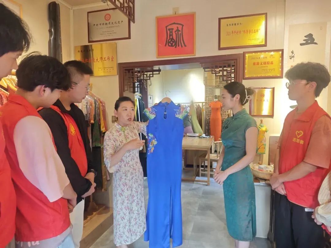 7月11日,第五站,社會實踐小分隊師生們來到了開封市鼓樓區,對開封市非物質文化遺產代表性項目五大祥劉氏傳統旗袍技藝開展研學活動。