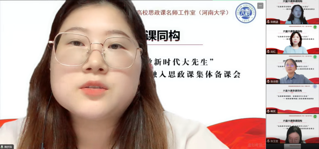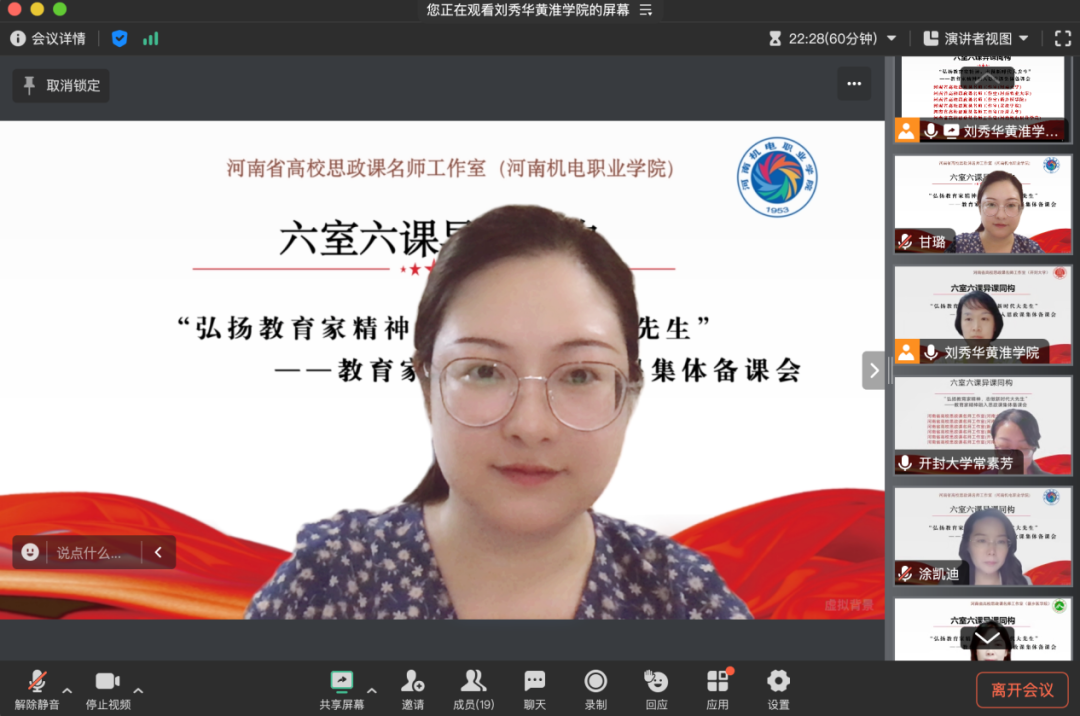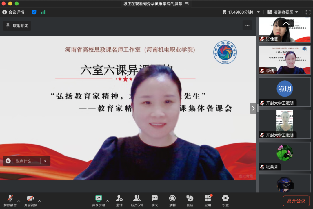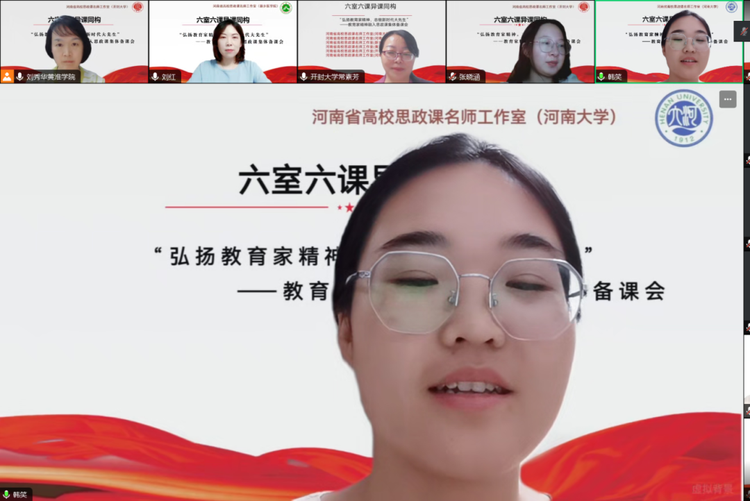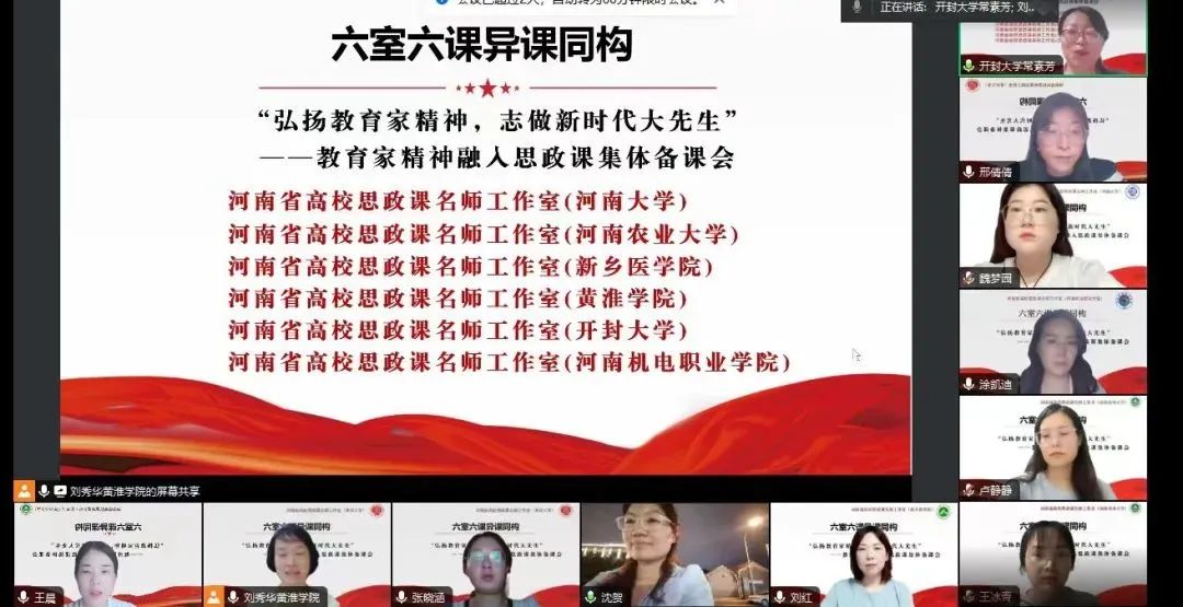 為深入學習貫徹習近平總書記關于教育的重要論述,切實落實《關于弘揚教育家精神加強新時代高素質專業化教師隊伍建設的意見》,積極推動教育家精神融入高校思想政治理論課教學,9月6日,河南省高校思政課名師工作室“六室六課異課同構”聯盟舉辦第四期集體備課會,本期備課會主題為“‘弘揚教育家精神,志做新時代大先生’教育家精神融入思政課”。