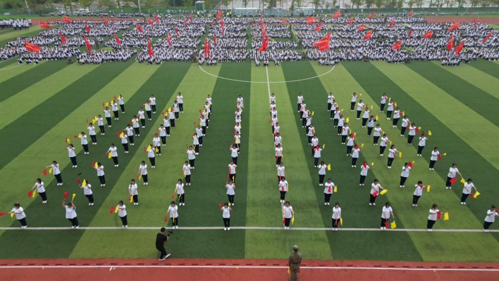 智能制造學院組建的軍體拳方陣、國際教育學院(外國語學院)組建的匕首操方陣,文化與旅游學院組建的旗語操方陣,醫學院組建的棍術表演方陣,信息工程學院(軟件職業技術學院)組建的擒敵拳方陣,數字經貿學院組建的戰術演練方陣分別進行了特色方陣匯報表演。