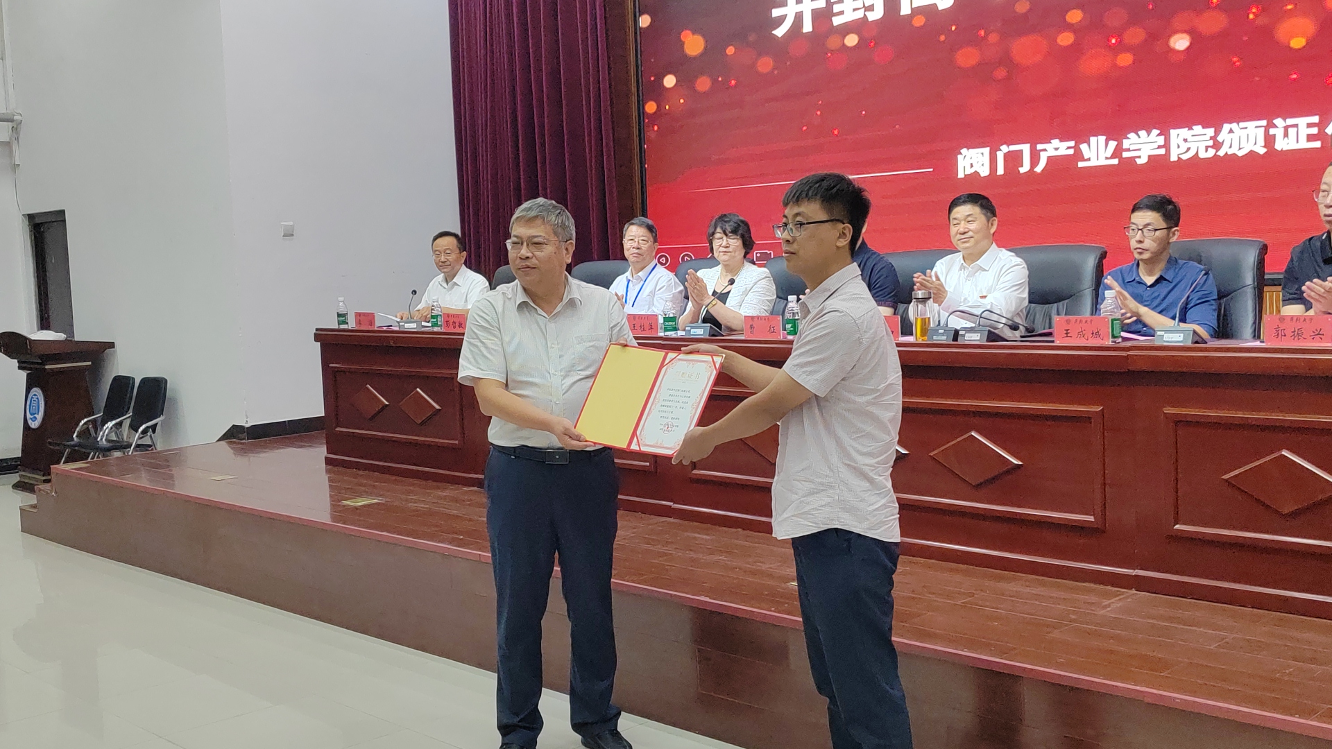 開封大學閥門產業學院院長朱躍峰、絲綢之路創新發展研究院院長王煒分別代表開封大學與絲綢之路創新發展研究院簽署戰略合作協議。重慶川儀自動化股份有限公司、浙江永盛科技股份有限公司、開封高中壓閥門有限公司等開封大學閥門產業學院合作單位授頒卓越貢獻獎,開封高中壓閥門有限公司獲頒企業捐贈證書。