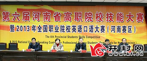 開封網訊 記者魏海洋報道 12月15日,由省教育廳主辦、開封大學承辦、河南天一教育集團協辦的“第六屆河南省高職院校技能大賽暨2013年全國職業院校英語口語大賽河南選拔賽”在開封大學成功舉行。河南省高校外語教學委員會委員、專科大學英語分會會長、安陽工學院副院長萬鵬杰、開封大學校長拜五四、副校長趙輝、耿廣利,大賽評委,參賽高校選手及指導教師參加大賽開幕式。