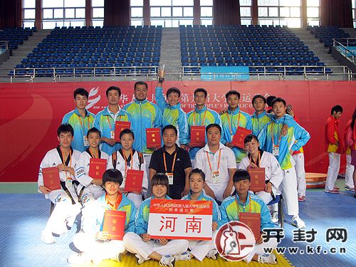 根據省教育廳的安排,我省大學生跆拳道隊16名選手在開封大學黨委副書記、河南省學生體育總會跆拳道協會主席儲建新的率領下參加了本次大運會跆拳道項目的比賽。由于領導高度重視,選手們訓練刻苦、賽場上奮力拼搏,最終取得了1金兩銅和4個第五的優異成績。