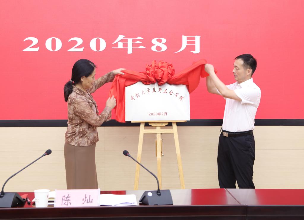 陳書(shū)記與付部長(zhǎng)共同為開(kāi)封大學(xué)蘭考“三余學(xué)院”揭牌。